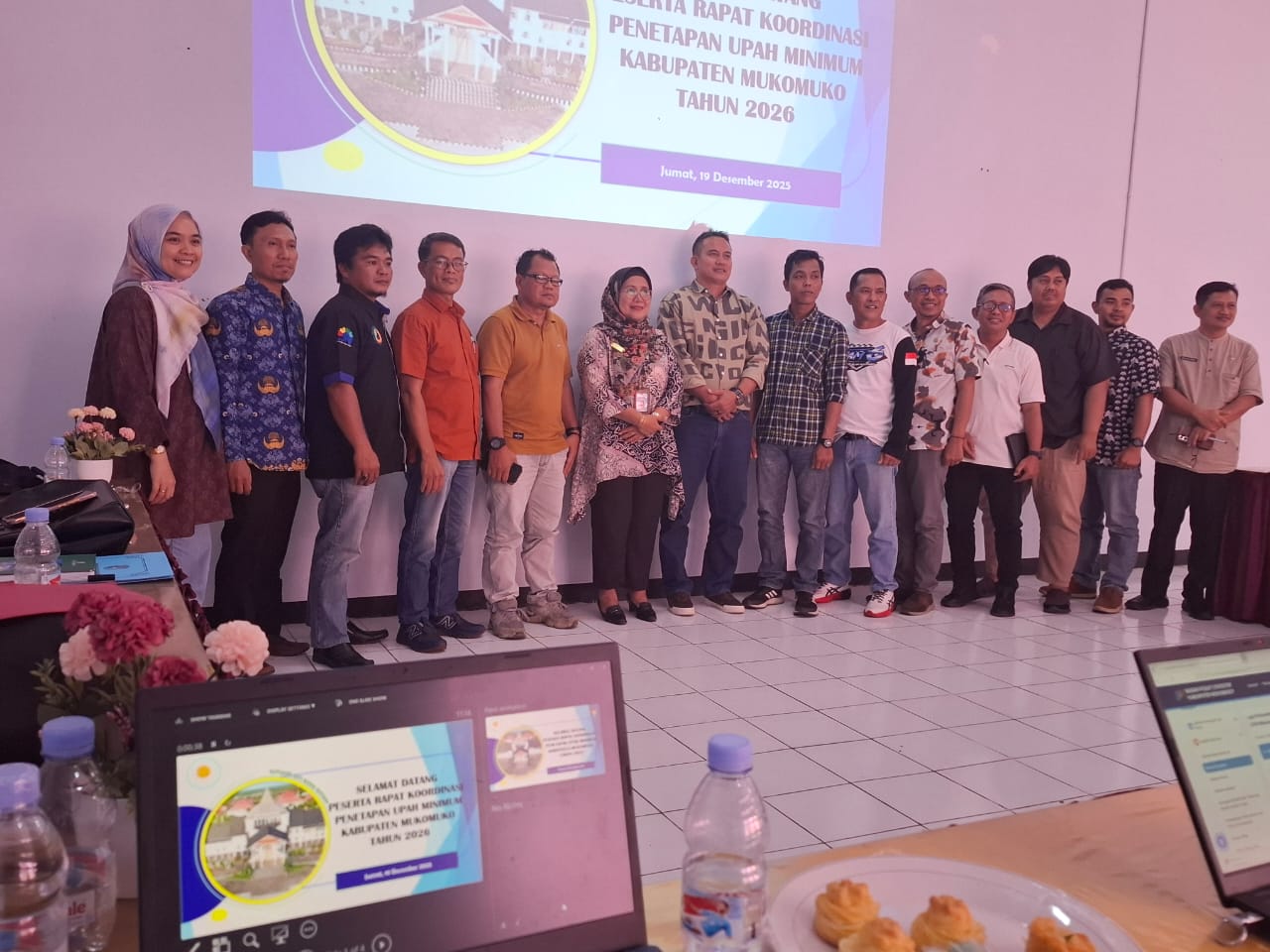 Ketetapan UMK Kabupaten Mukomuko tahun 2026 berdasarkan hasil rapat koordinasi (Rakor) dewan pengupahan bersama pemerintah daerah yang diselenggarakan di Aula Badan Perencanaan Penelitian Pembangunan (Bappelitbang) Mukomuko pada Jum’at, 19 Desember 2025.