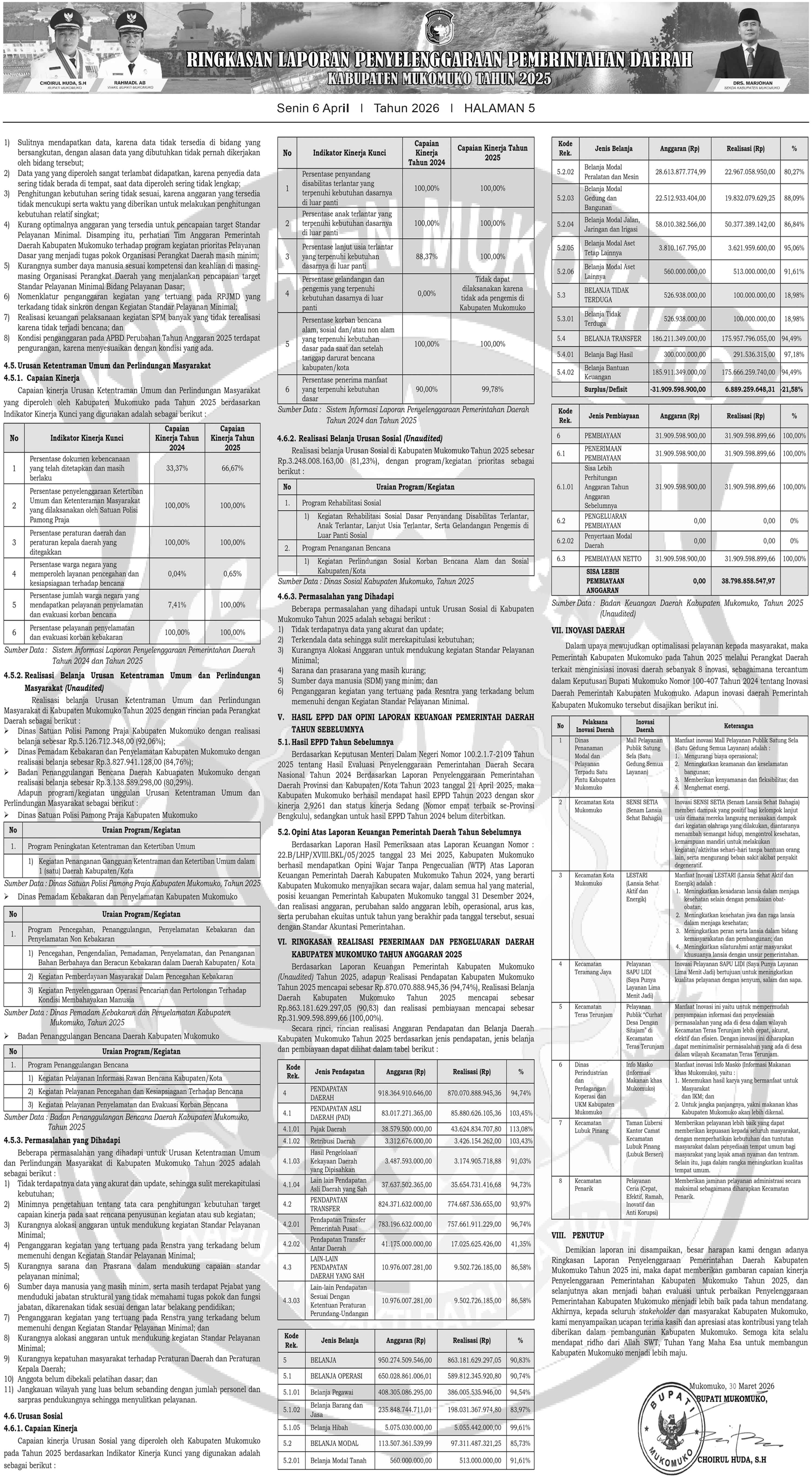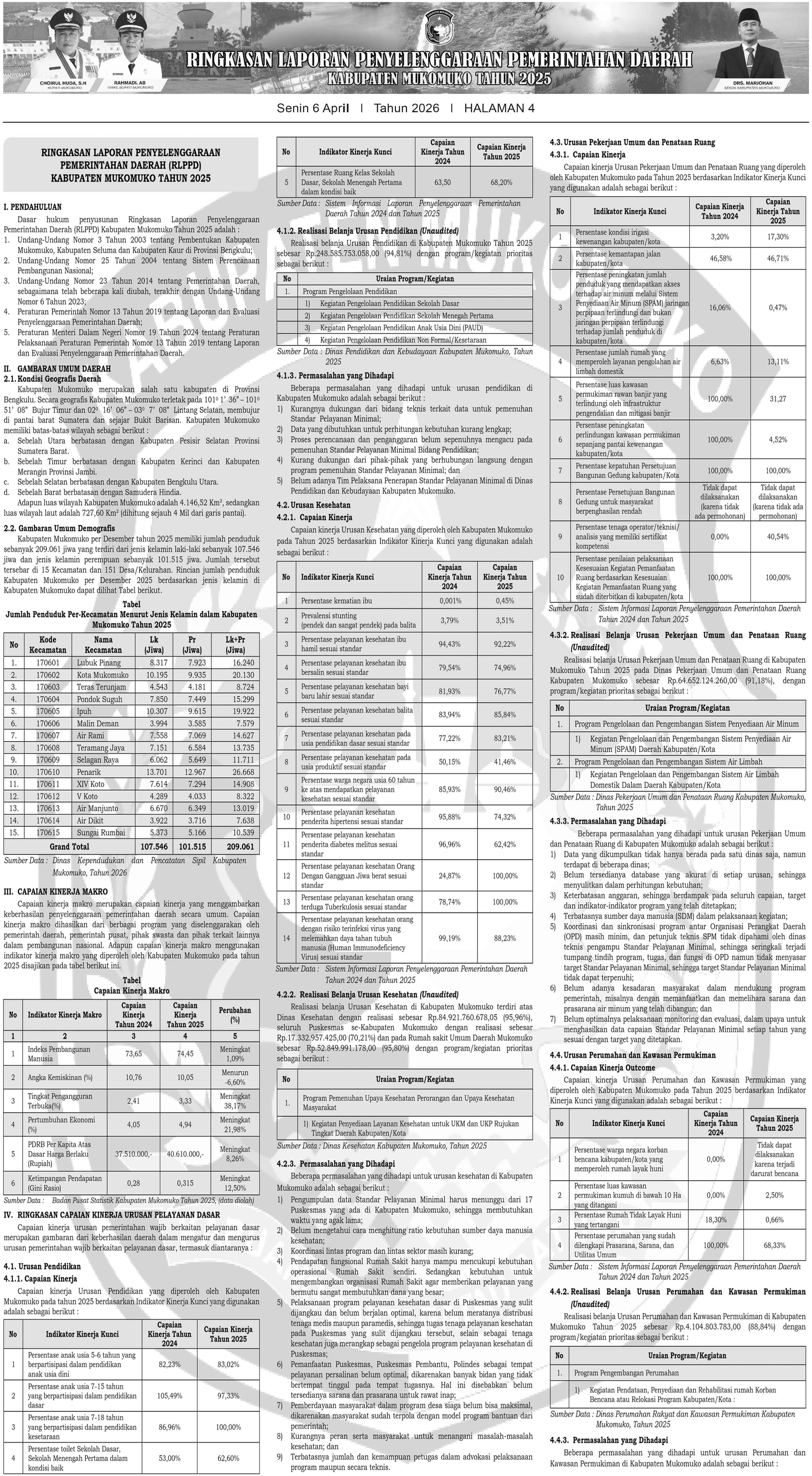 RADARMUKOMUKO.COM - Ringkasan Laporan Penyelenggaraan Pemerintah Daerah (RLPP) Kabupaten Mukomuko 2026.